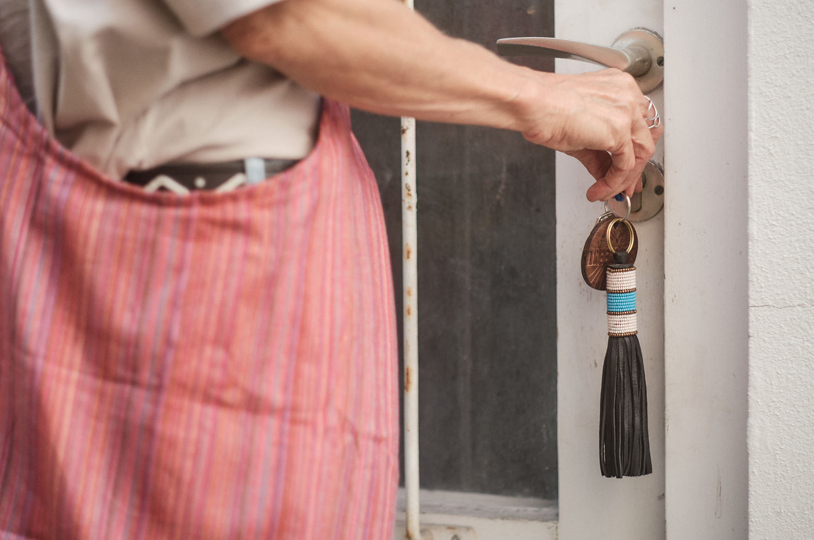 Mit den typischen Stoffen zaubern die Produzenten und ich zauberhafte traditionelle Produkte. Mit dem Kauf eines Produktes unterstützt du die Bewohner in Kenia.