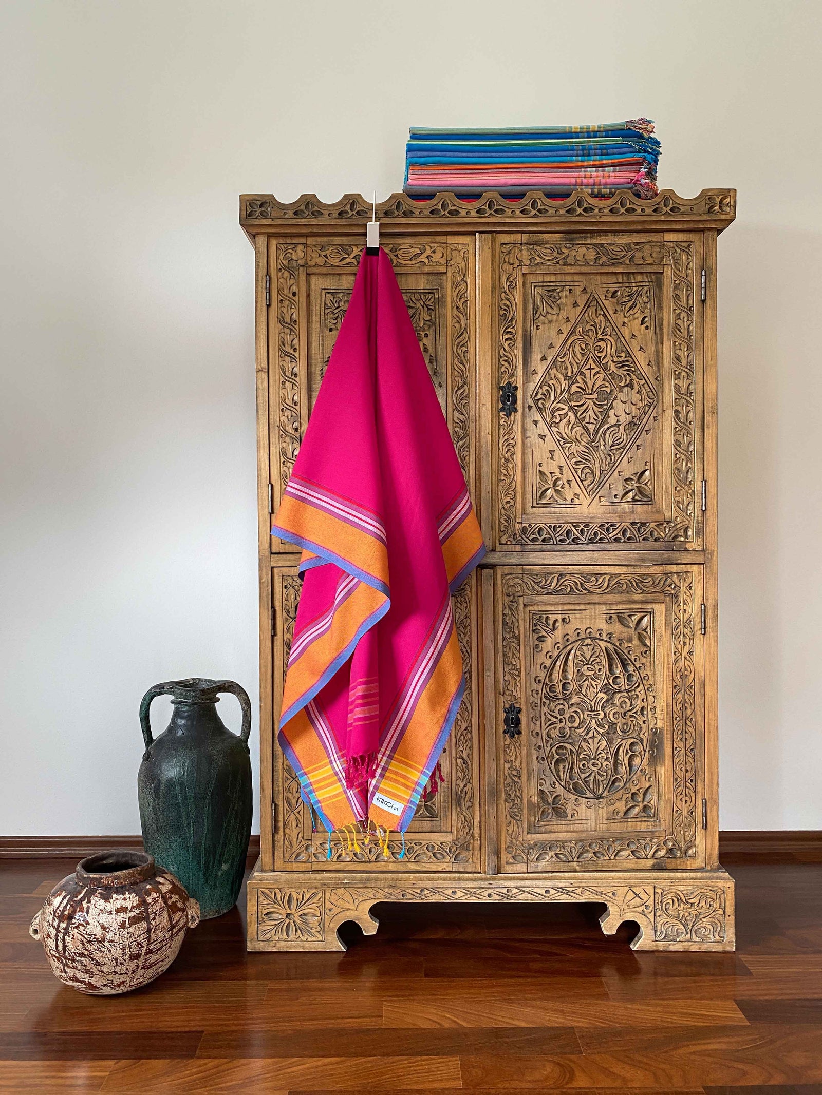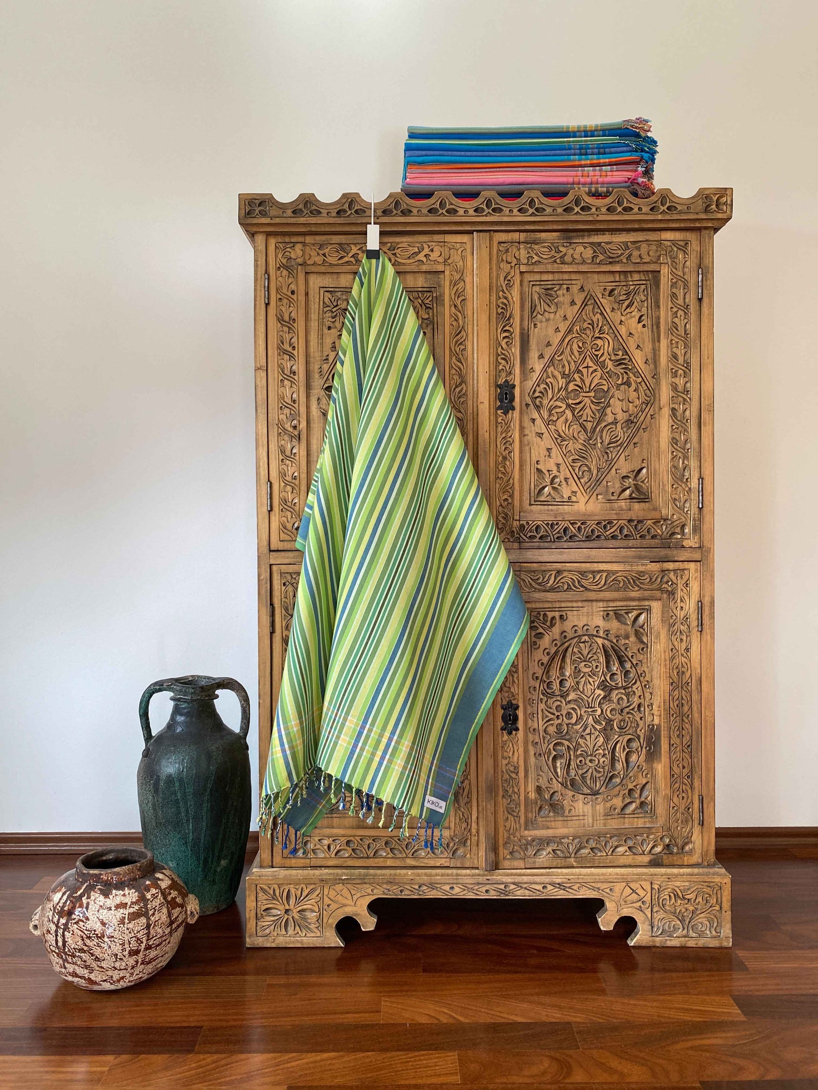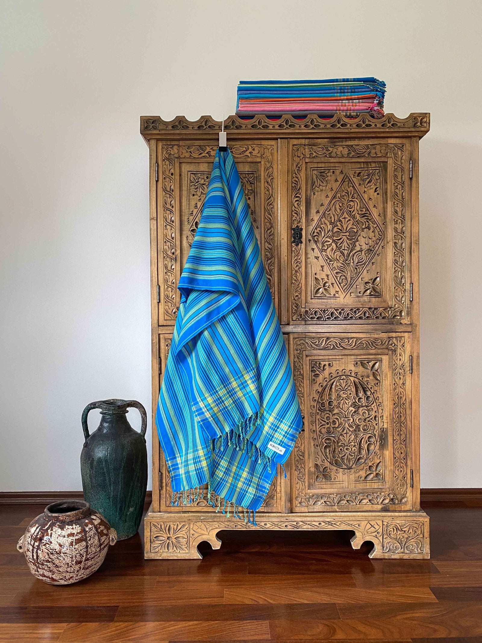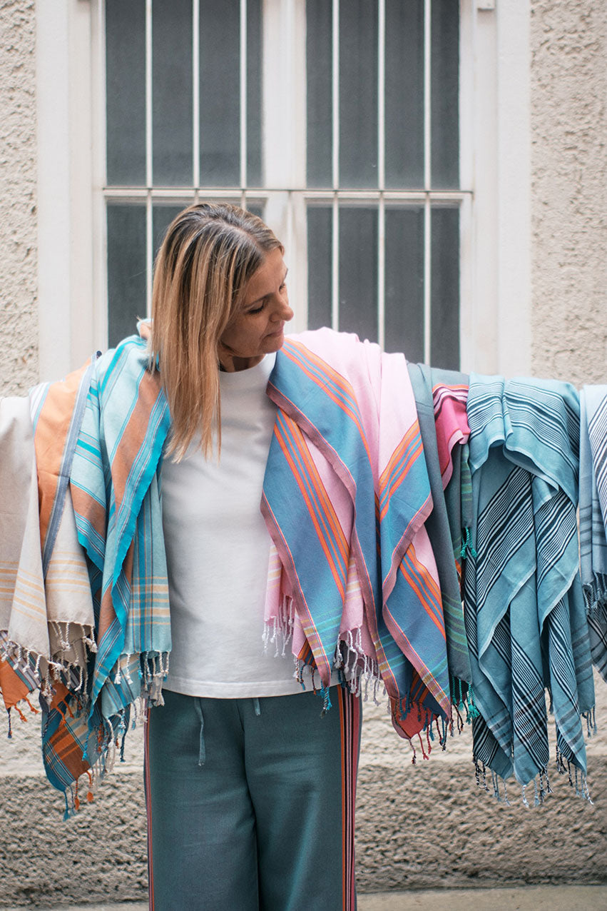 Ein Kikoi ist ein ostafrikanisches, traditionelles Baumwolltuch in wunderschönen Farben, das von den Küstenbewohnern seit Jahrzehnten als Kleidungsstück getragen wird. Kikoi ist Suaheli und bedeutet ein Stück Stoff bzw. ein Tuch. Die Schreibweise in Suaheli ist mit „i“ und in Englisch mit „y“.
