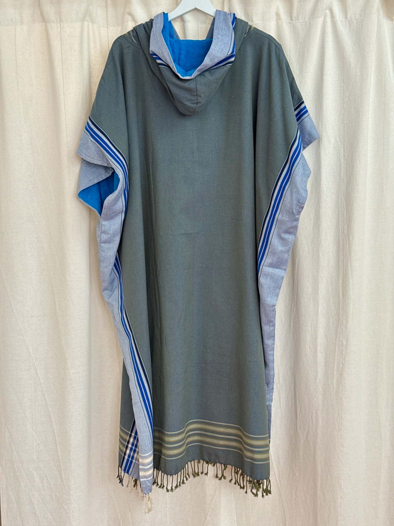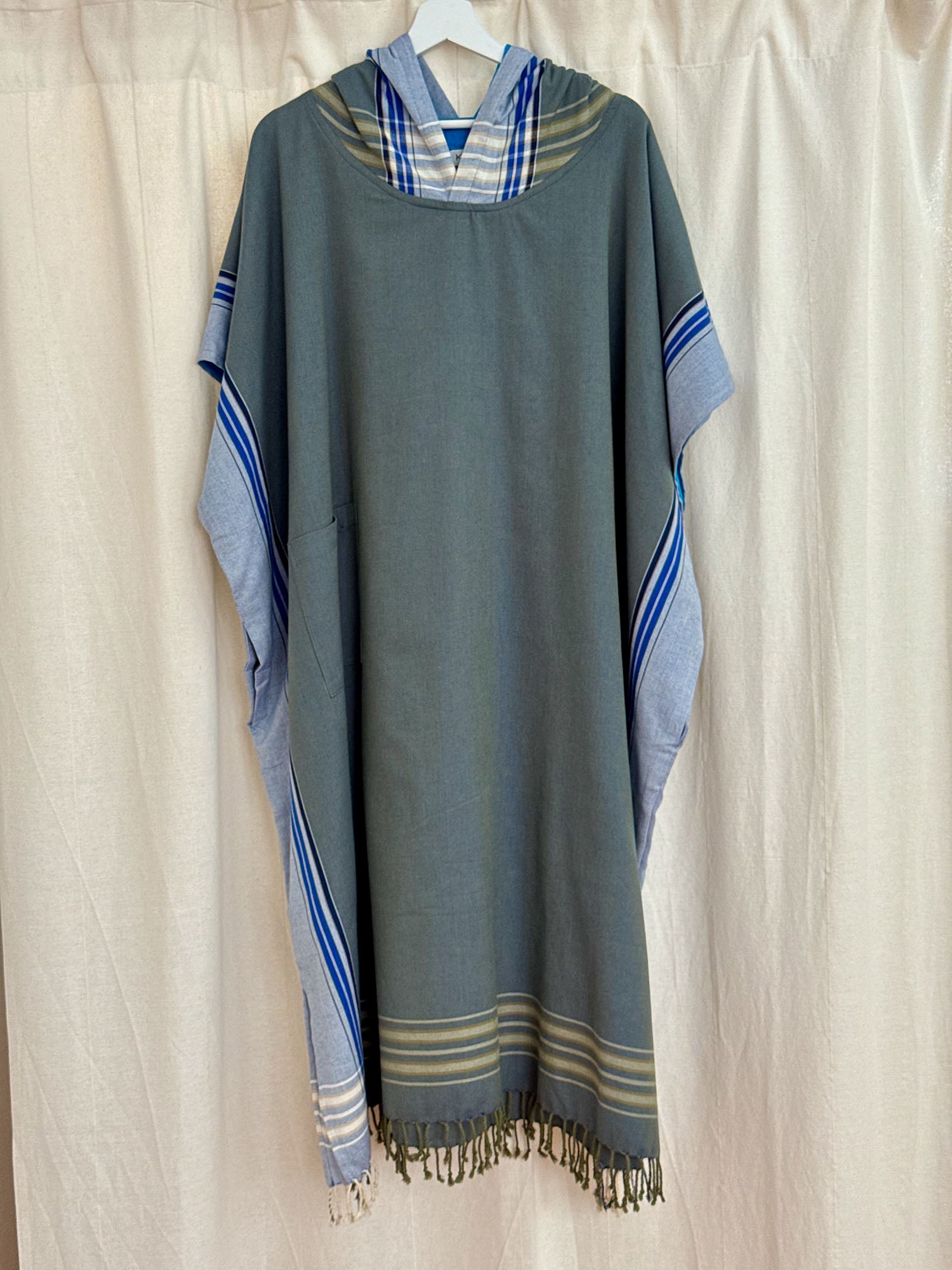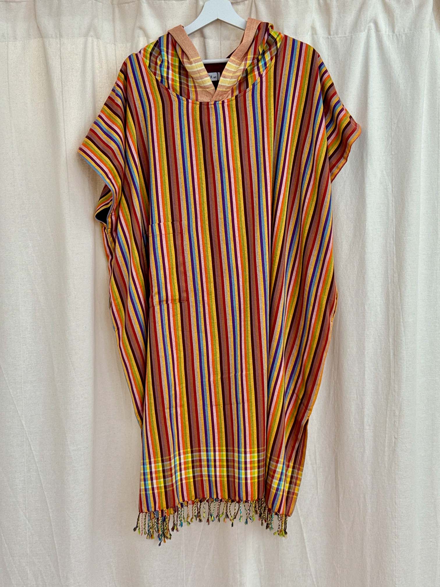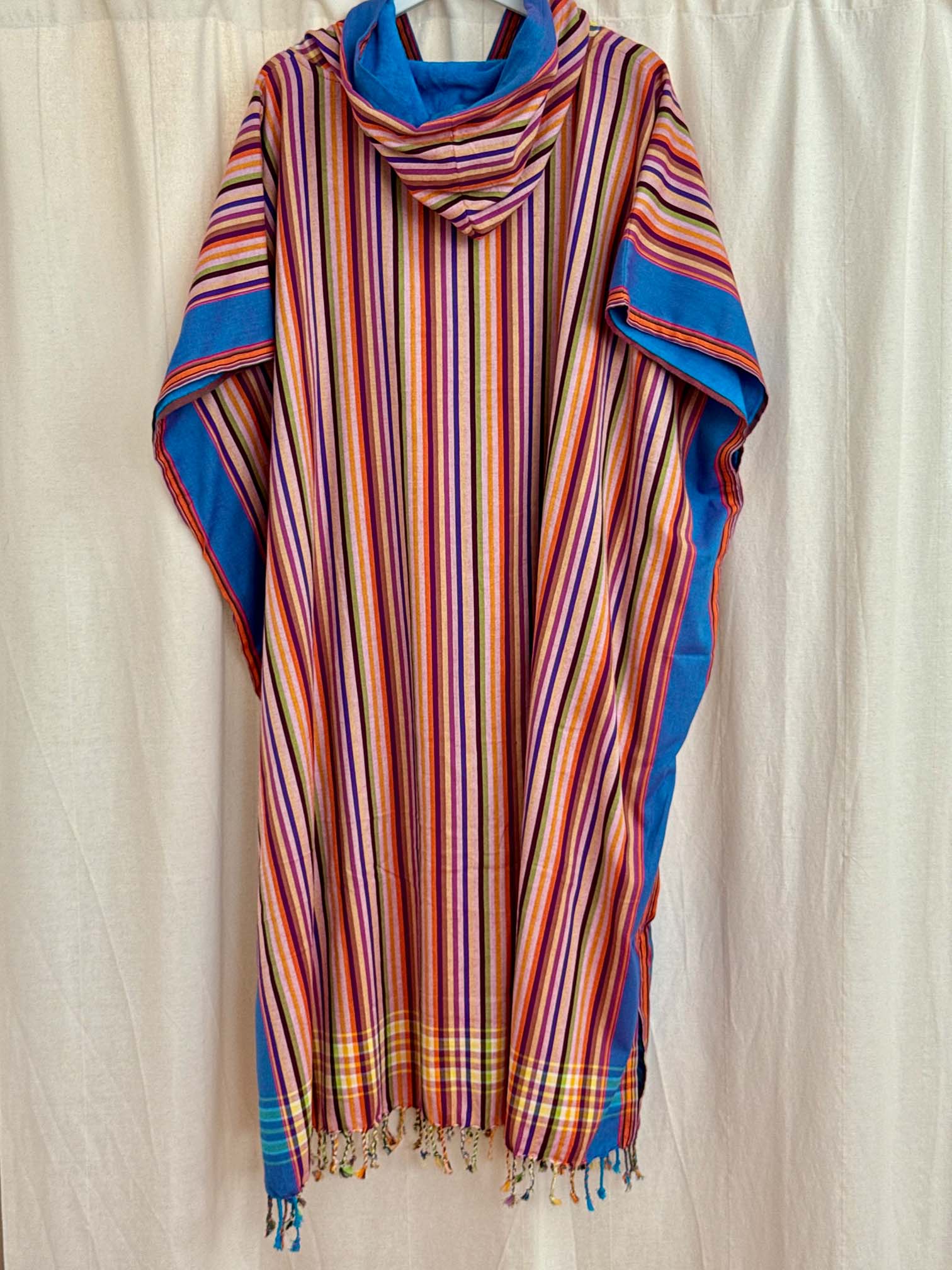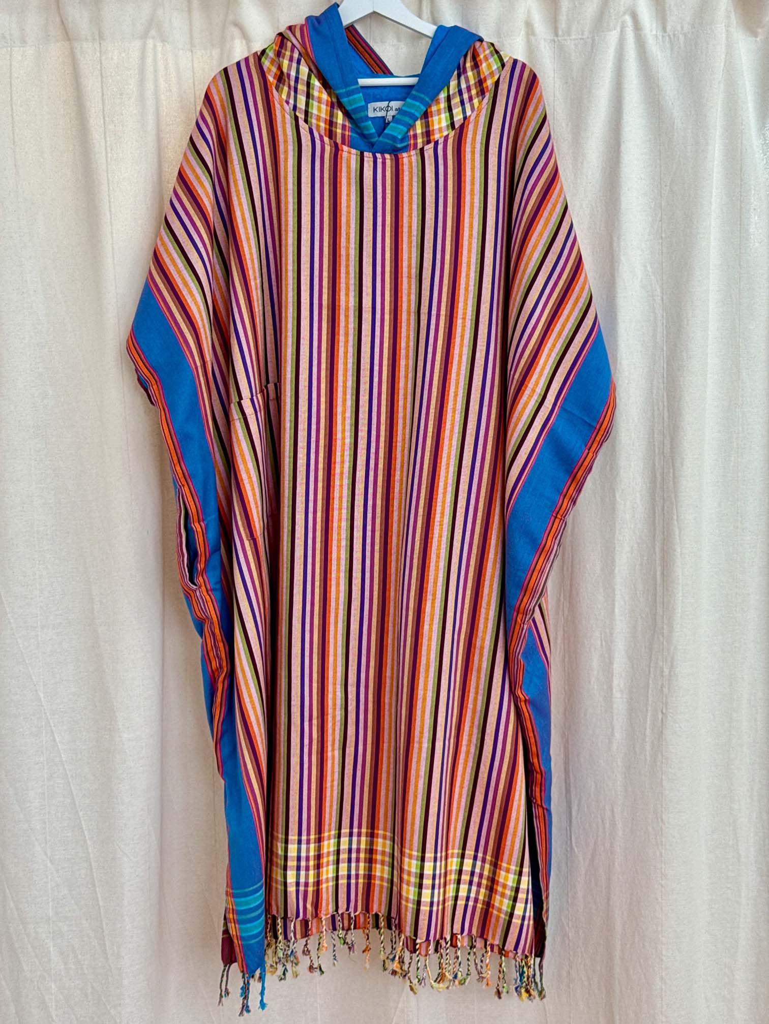Dank dem Kikoi Stoff und dem Frottee Futter sind die Badeponchos schnell trocknend und kuschelig bequem. Sie haben einen weiten, großzügigen Schnitt, was insbesondere von Surfern sehr geschätzt wird. Die praktische Kapuze schützt zudem vor Wind.