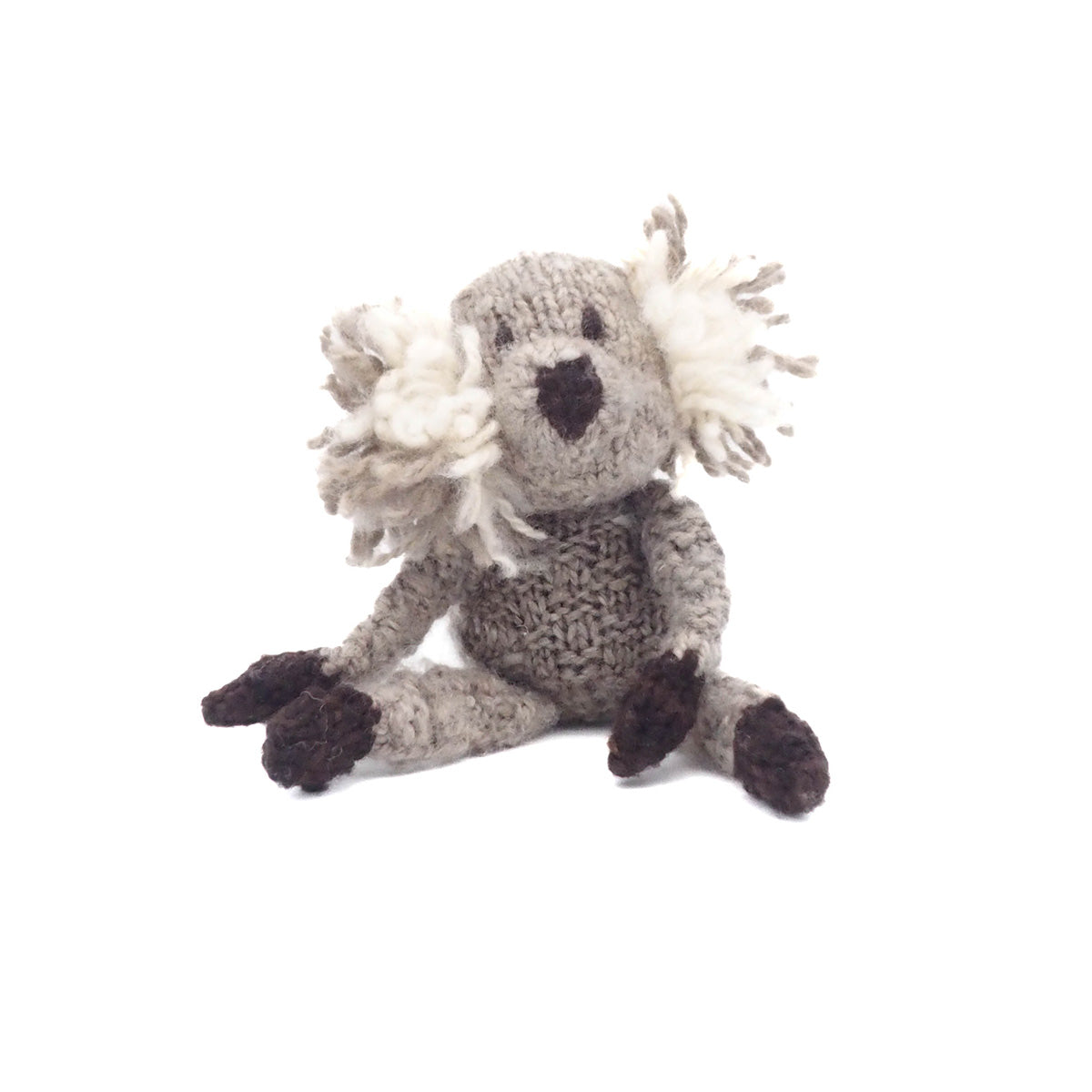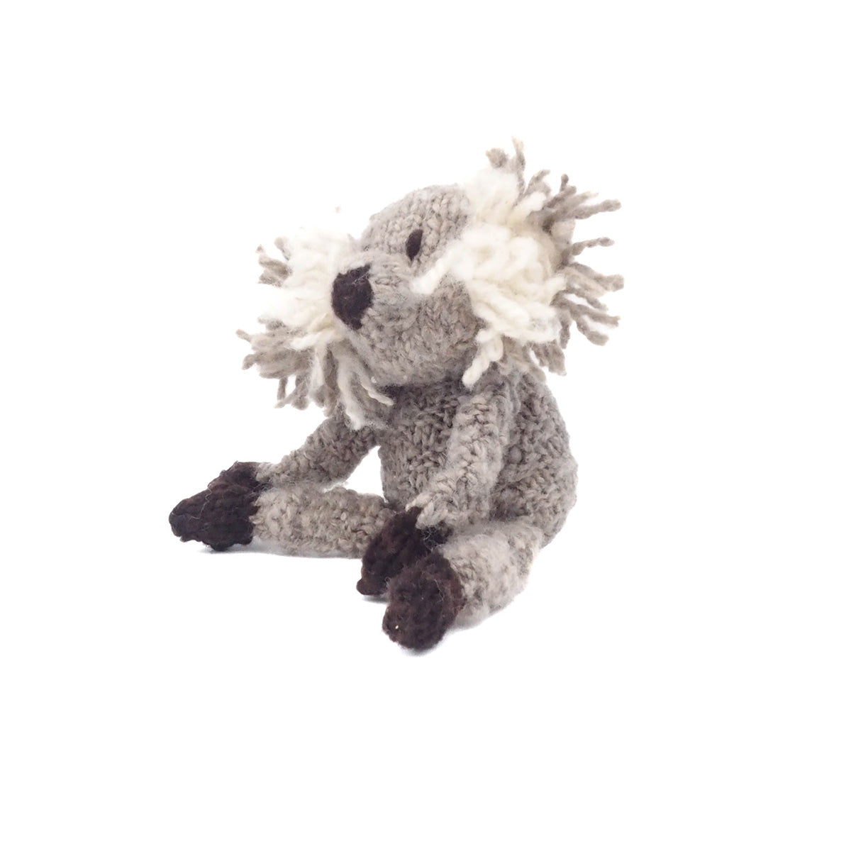 Lass Dich verzaubern von Bären, Hasen, Löwen, Affen, Zebras,… die so aussehen, wie sie so manche Oma für uns gestrickt hat! Die Stofftiere aus Wolle sind zwischen 20 und 45 cm hoch und damit die optimalen Kuscheltiere. Kleinere Exemplare finden sich auch unter ihnen.