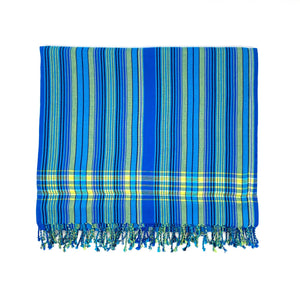 Ein Original Kikoy aus Kenia ist ein traditionelles Baumwolltuch und hat handgezwirbelte, verknotete Fransen. Das Kikoi Tuch wird von den Küstenbewohnern Ostafrikas seit Jahrzehnten als Kleidungsstück getragen.