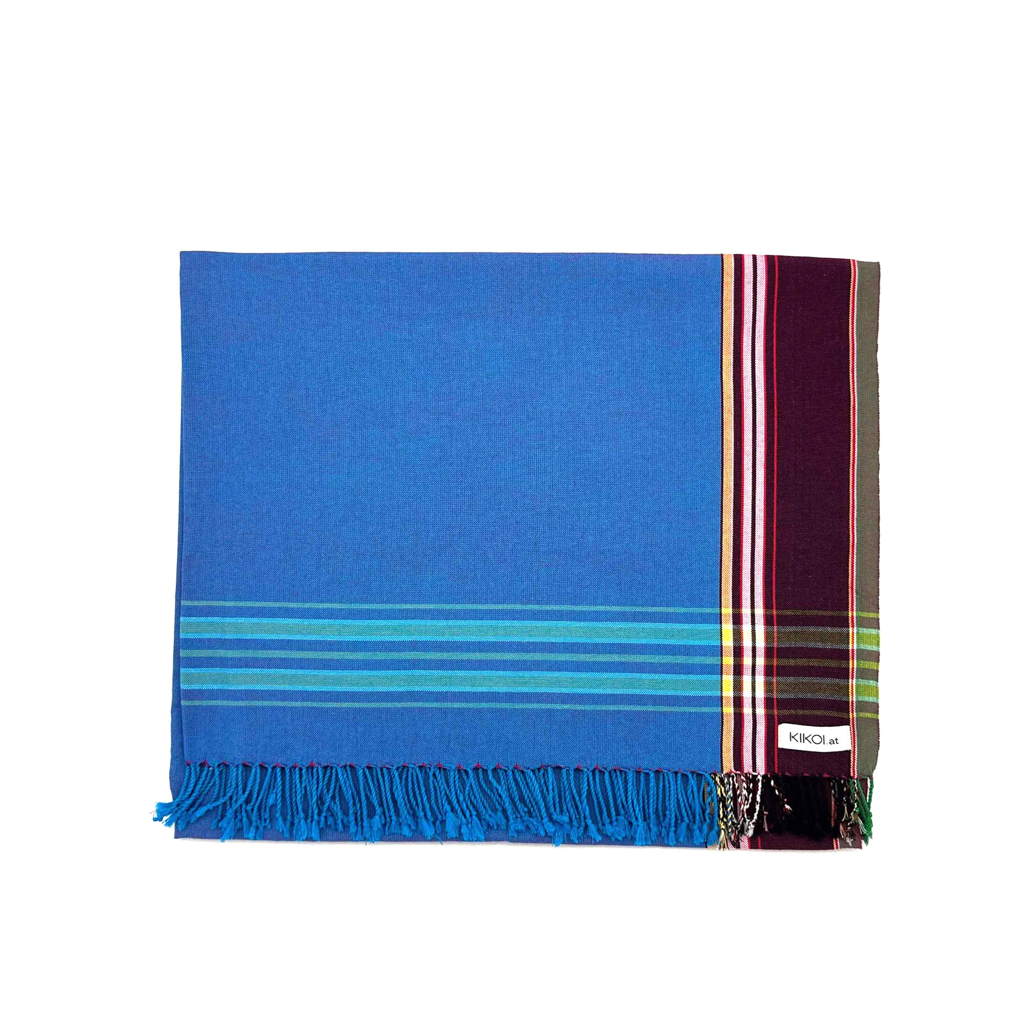 Ein Original Kikoy aus Kenia ist ein traditionelles Baumwolltuch und hat handgezwirbelte, verknotete Fransen. Das Kikoi Tuch wird von den Küstenbewohnern Ostafrikas seit Jahrzehnten als Kleidungsstück getragen.